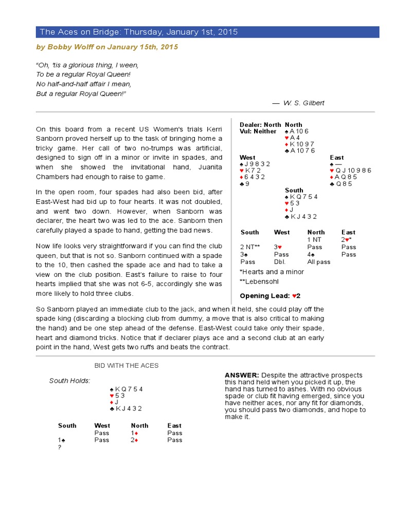 The Aces On Bridge 2015 Bobby Wolff Pdf Pdf Contract Bridge Playing Cards